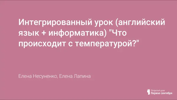 Представлен интегрированный урок (английский язык и информатика) по теме "Что происходит с температурой?". Использование компьютера на уроке английского языка помогает созданию ситуации успеха, которая способствует развитию творческих, познавательных способностей учащихся по актуальной экологической теме о природных катаклизмах, связанных с погодными условиями и результатами человеческой деятельности. На данном уроке учащиеся закрепляют полученные знания по информатике, строят диаграммы температур в MS Excel, анализируют творческий проект на английском языке.