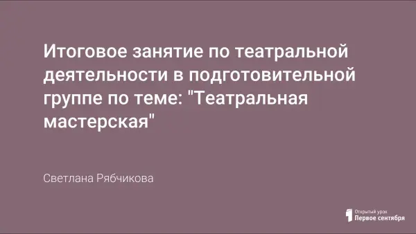 Занятие проводится в подготовительной группе детского сада. Оно посвящено театру: устройству театра снаружи и изнутри.