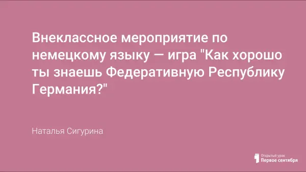 Данное мероприятие проводится с целью привития интереса к изучению немецкого языка. Оно способствует проверке уровня лексических, грамматических знаний и монологической и диалогической речи. Выполнение творческих заданий позволяет активно повторить изученный материал и закрепить лексический и грамматический материал.