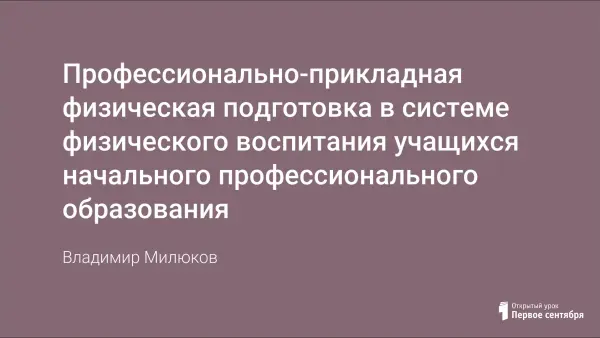 В процессе подготовки молодежи к производительной деятельности важную роль играет система физического воспитания с профессиональной направленностью, представляющая собой одно из эффективных средств развития и совершенствования определенных физических качеств, двигательных навыков и умений, а также способностей адаптироваться к сложным производственным условиям.