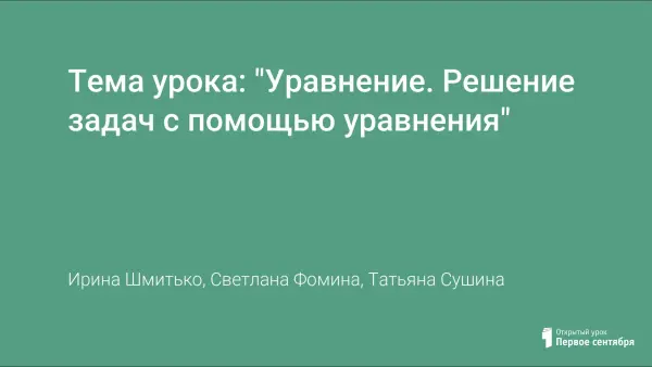 Тема урока: "Уравнение. Решение задач с помощью уравнения"