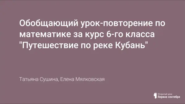 Обобщающий урок-повторение по математике за курс 6-го класса "Путешествие по реке Кубань"