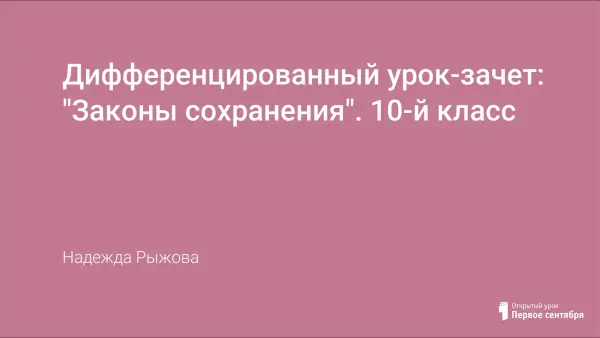 Цель данного урока – обобщить и проверить знания темы "Законы сохранения в механике" на доступном ученику уровне трудности; развивать у учащихся умение самостоятельно применять знания, осуществлять их применение в новых условиях; принимать самостоятельные решения, действовать в нестандартных ситуациях, оценивать свои знания.