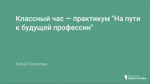 Цель занятия – способствовать активизации процесса формирования готовности старшеклассников к профессиональному самоопределению. Занятие в форме практикума предусматривает активизирующие упражнения, методы «мозгового штурма», «мастер-класс», различные виды деятельности и личностно- и практико-ориентируемый характер.