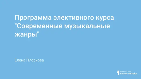 Разработка предназначена для предпрофильной подготовки учащихся 9-го класса к обучению по художественному направлению гуманитарного профиля. Цель курса - формирование системы музыкально-эстетических ценностей учащихся в условиях массовой культуры с опорой на знание эволюции музыкального искусства, его современных стилей и жанров.