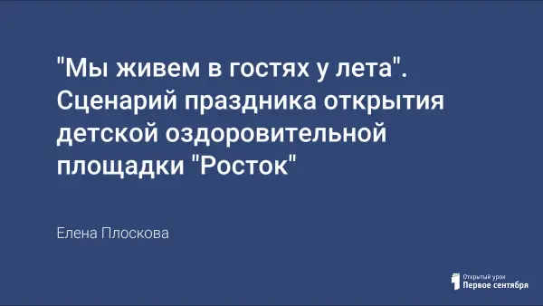 В разработке представлен сценарий праздника открытия детской оздоровительной площадки «Росток» для детей младшего школьного возраста (7-10 лет). Сценарий включает в себя активизирующие упражнения, творческие задания, музыкальный репертуар. Адресован организаторам детского досуга.