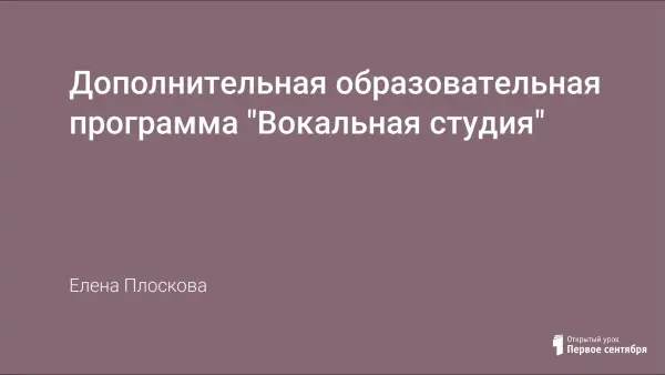 Дополнительная образовательная программа вокально-хоровой студии – модифицированный вариант программы детских вокальных коллективов школ и учреждений дополнительного образования. В программе излагаются общие положения, учебно-тематический план, содержание программы, требования к уровню подготовки, примерный репертуар, этапы педагогического контроля для каждой ступени обучения.