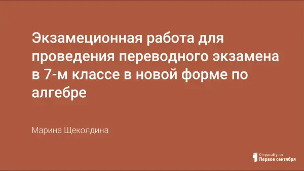 Данная работа представляет собой вариант экзаменационной работы для проведения переводного экзамена в 7-м классе в новой форме по алгебре.