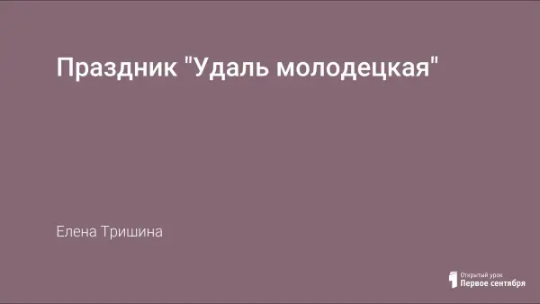 Никакое экономическое развитие невозможно без возрождения национального самосознания и национальной культуры как его составляющей. В связи с этим мы интегрируем в современные государственные праздники содержание народной культуры. Одним из таких примеров является общешкольный праздник "Удаль молодецкая", который проводится в День защитников Отечества. С учетом преобладающего русского населения нашего города мы сочли необходимым более глубоко знакомить детей с особенностями русской культуры. При его подготовке был учтен колорит русского языка, бытовые традиции, сказочные сюжеты и персонажи, фольклор, русские народные игры.