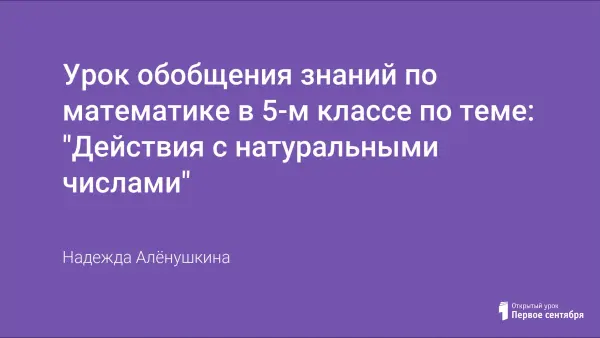 Урок обобщения знаний по математике в 5-м классе по теме "Действия с натуральными числами". Форма урока – групповая. На уроке апробирован метод вариативного обучения. В основе технологии проведения урока с использованием таксономии учебных заданий (балльной оценки заданий в течение урока) лежат договорные отношения с учащимися.