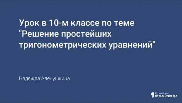 Урок носит обобщающий характер. Основной целью является закрепление навыков решения простейших тригонометрических уравнений, подготовка к ЕГЭ. Через создание ситуации успешности каждого учащегося развивается самостоятельность, ответственность, обоснованная самооценка, активное участие в решении поставленных задач.