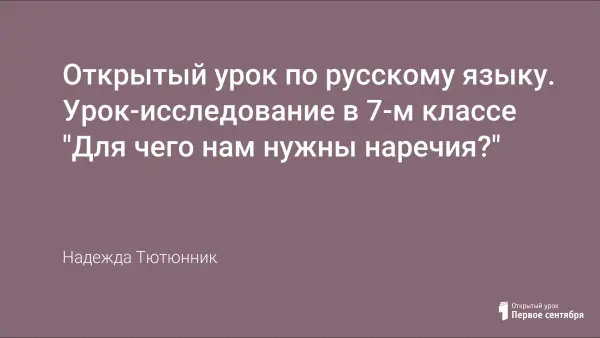 Цели урока: обобщить и расширить знания о наречии как части речи, обогатить речь учащихся наречиями; вырабатывать навыки правильного написания наречий; воспитание интереса к урокам русского языка.