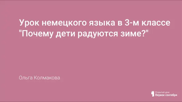 Этот урок проводится в 5-м классе по завершении вводного курса. Учащиеся в игровой форме демонстрируют свои первые успехи в овладении немецким языком. Они заранее готовятся к этому уроку: разучивают стихи, песни, рифмовки.