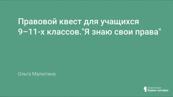 Цели квеста: формировать знания учащихся о правах ребенка, понятие о неразрывной связи прав и обязанностей, представление о защите прав ребенка в РФ, умение различать действительное и мнимое нарушение прав; развивать навыки работы в группах, логическое мышление, умение выделять главное в тексте, память; воспитывать уважение к правам человека, сострадание к людям, чьи права нарушаются, взаимоуважение, толерантность.