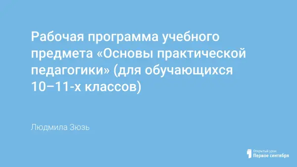 Курс «Основы педагогической практики» разработан для учащихся 10–11-х классов как профориентационный на педагогическую профессию, а также как предпрофильная подготовка социально-гуманитарной направленности. Курс рассчитан на 68 учебных часов (34 ч. - 1 час в неделю в 10-м классе и 34 ч. – 1 час в неделю в 11-м классе). Цель курса: актуализация процессов профессионального самоопределения старшеклассников, включение учащихся в деятельность, максимально приближенную к педагогической.