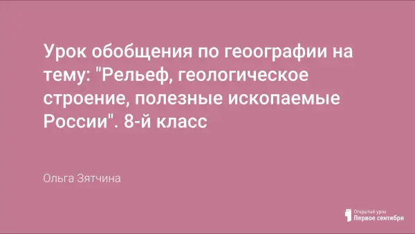 Урок проводится для определения уровня знаний учащимися основных понятий темы, проверяет понимание взаимосвязи между тектоническими структурами и формами рельефа, расширяет знания учащихся по другим предметам.
