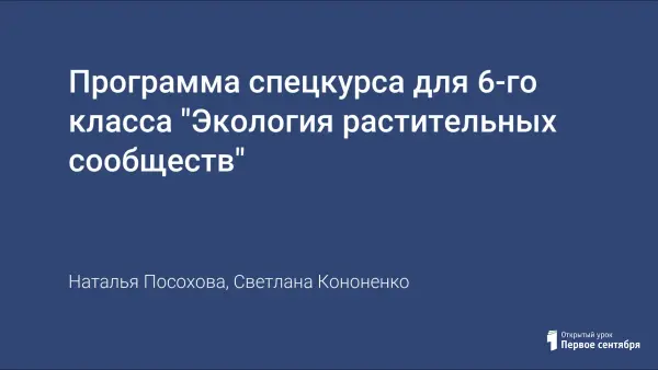 Программа спецкурса для 6-го класса "Экология растительных сообществ"
