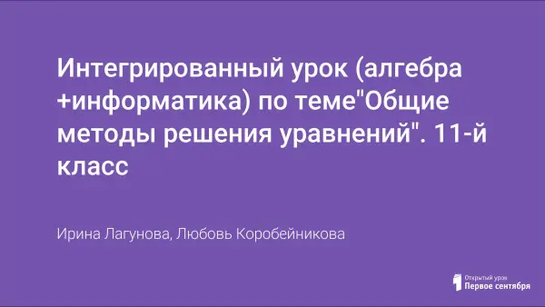 Интегрированный урок (алгебра +информатика) по теме"Общие методы решения уравнений". 11-й класс