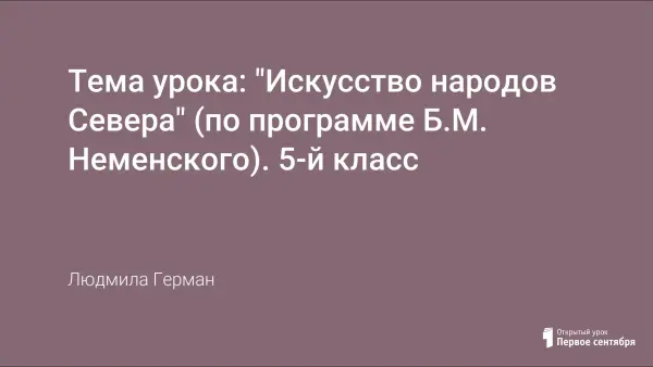 На уроке в 5-м классе по теме "Искусство народов Севера" расширяются знания детей о декоративно-прикладном искусстве своего края, решается проблема приобщения ребенка к искусству на личностно значимом для него художественном материале его родного края.