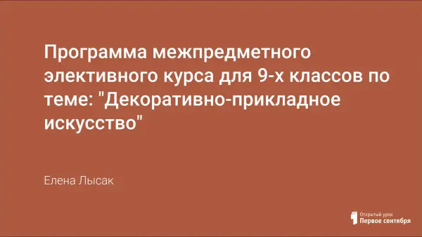 Программа адресована учителям изобразительного искусства и технологии, которые работают с учащимися 9-х классов. Она создаёт условия для развития у учащихся всех видов творческой деятельности, совершенствует навыки проектирования на основе предложенного педагогом материала, значительно расширяющего их кругозор. Программа позволяет учащимся получить дополнительные знания по декоративно-прикладному искусству и художественной культуре России.