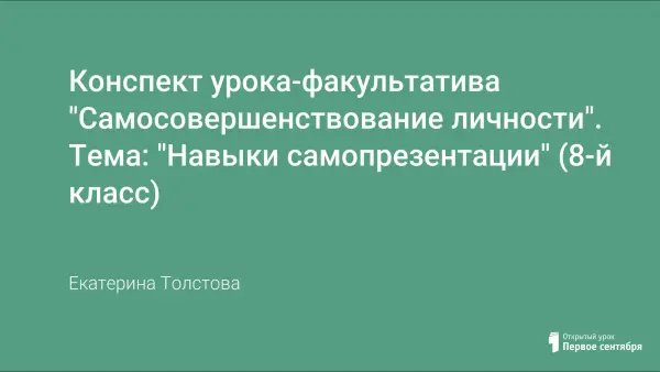 Урок создан в целях оптимальной мотивации самоутверждения. Вся работа на уроке направлена на формирование у учащихся потребности в самовыражении, в самооценивании. Учащиеся знакомятся с понятием "самопрезентация".