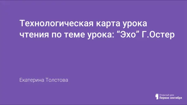 Урок разработан по адаптированной основной образовательной программе для детей с легкой умственной отсталостью, 3-й класс. Тема урока: “Эхо” Г.Остер. Во время урока учащиеся знакомятся с творчеством и произведением Григория Остера “Эхо”. Все упражнения направлены на развитие навыков осознанного чтения и умения проводить анализ текста.