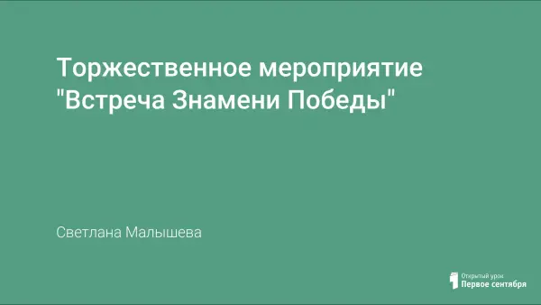 Одним из ключевых мероприятий ко Дню Победы является эстафета копий Знамени Победы, водруженного над рейхстагом (передача знамени из школы в школу, из музея в музей и т.д.). Копию знамени привозят в школу на день или на несколько часов, около него устанавливается почетный караул, проводятся торжественные мероприятия для учащихся, посвященные встрече Знамени Победы.