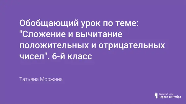 В сатье представлен конспект урока по математике для 6-го класса "Сложение и вычитание положительных и отрицательных чисел".