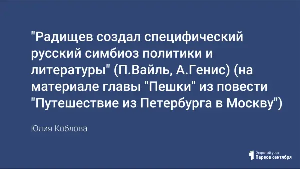 На уроке продолжается работа над темой "Черты сентиментализма в повести А.Н. Радищева "Путешествие из Петербурга в Москву". Занятие предполагает систематизацию и практическое применение знаний о сентиментализме как литературном направлении XVIII века, сведений из биографии автора и приемов анализа художественного текста.