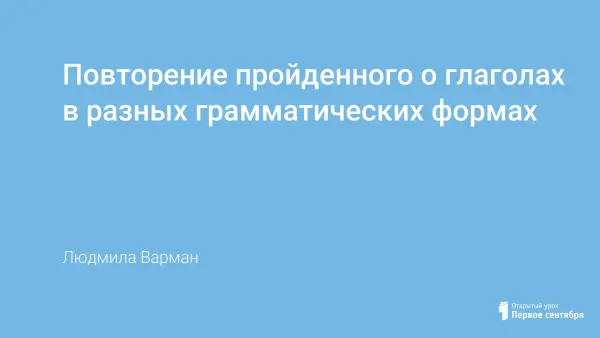 На уроке совершенствуeтся умение определять время глаголов. В зависимости от времени определять число, лицо (род) глаголов. Материал данного урока можно использовать, работая по любой программе.