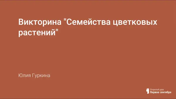 Обобщающий урок-викторина по теме «Семейства цветковых растений» закрепляет знания о принадлежности цветковых растений к определенным семействам, о происхождении и использовании культурных растений. Можно использовать как внеклассное мероприятие во втором полугодии.