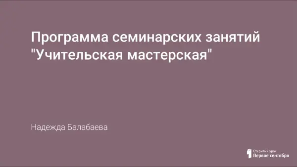 В предложенном материале представлена программа семинарских занятий «Учительская мастерская». Реализация программы позволит открыть новые возможности в педагогической деятельности учителя, активизировать работу.
