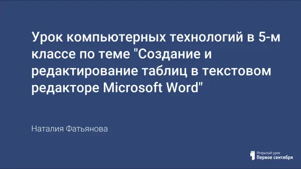 Урок компьютерных технологий по курсу "Основы компьютерной грамотности" в 5-м классе специальной (коррекционной) школы-интерната I и II вида по теме: "Создание и редактирование таблиц в текстовом редакторе Microsoft Word" (Microsoft Office 2007).