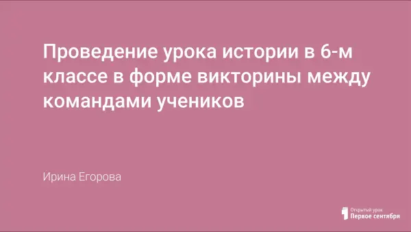 В работе приведена разработка проведения урока истории в 6-м классе в форме викторины между тремя командами учеников. Цель викторины - закрепление пройденного учебного материала в форме соревновательной игры с использованием самостоятельно изготовленных учениками костюмов и реквизита. Викторина проводится в несколько этапов и подразумевает участие всех учеников класса. Судейство осуществляют специально отобранные ученики этого класса (герольды) под руководством учителя. Приведены методические рекомендации для учителей.