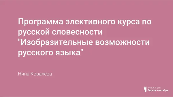 Программа элективного курса по русской словесности "Изобразительные возможности русского языка"