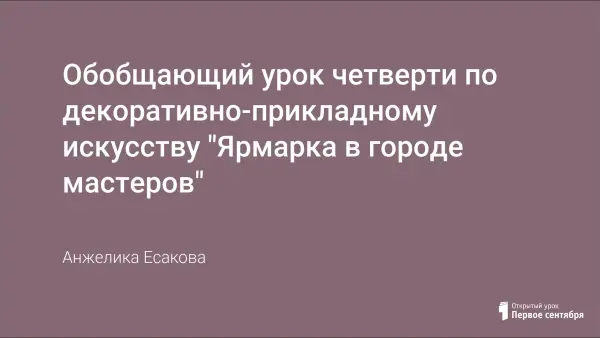 Представленный урок является обобщающим по теме «Декоративно-прикладное искусство» и предложен в форме праздника, объединяющего учеников нескольких параллелей. Атмосферу праздника помогает создать интегрирование предмета ИЗО и музыки. Одной из основных целей урока является развитие чувства сопричастности детей к истокам русской национальной культуры.