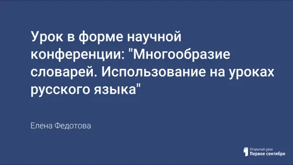 Задача урока - познакомить учащихся с многообразием словарей и показать возможность использования их в своей работе. Урок построен в виде научной конференции. Заранее дети были разделены на группы-лаборатории и при помощи учителя готовили задания, лексические игры, информацию об определенном словаре: ударений, морфем, синонимов и пр. Данный урок благодаря познавательным играм проходит очень весело и интересно: дети чувствуют себя настоящими научными сотрудниками, исследователями. Главный итог урока - ученики осознают, что справочная литература несет в себе очень много полезного и интересного материала.