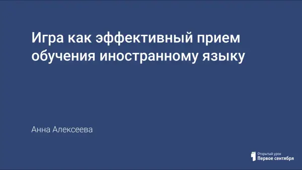 Все мы знаем, что играть - весело, однако некоторые считают, что веселье - единственный смысл игр и в них нет никакой педагогической ценности. Заблуждение! Игры - это активный способ достичь многих образовательных целей. Работа рассматривает роль игры в обучении иностранному языку, основные положения игр, оптимальный размер группы при проведении игры, классификацию коммуникативных игр.