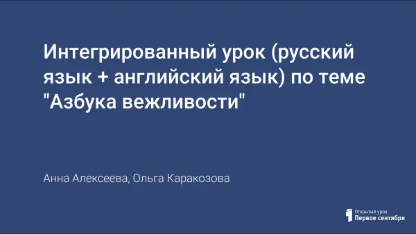 Данный урок учит детей вежливому обращению, уважению к человеку любого возраста, знакомит с миром вежливых слов и речевых оборотов, воспитывает в детях чувство собственного достоинства, бережное отношение друг к другу, формирует духовную нравственную личность, а также знакомит с английским речевым этикетом. Данный урок сопровождается красочной презентацией, а занимательные задания делают мероприятие интересным и запоминающимся.