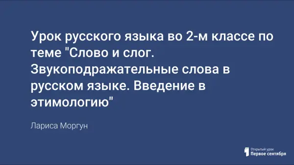 Мультимедийный урок по русскому языку ориентирован на учащихся начальной школы, 2-й класс, по УМК "Школа России". В уроке отобраны исконно русские звукоподражательные слова. Это небольшая часть нашей лексики. Этимология этих слов наиболее доступна младшим школьникам, что объясняется особенностями речевого развития ребёнка. Звукоподражание свойственно детям на более ранней стадии развития речи. Поэтому и знакомить детей с этимологией звукоподражательных слов целесообразно в первую очередь.