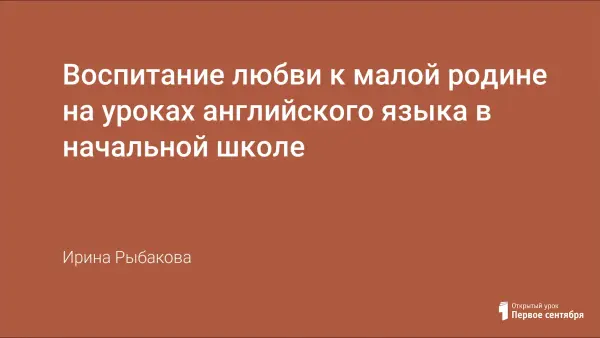 Воспитание любви к малой родине является приоритетным принципом государственной политики. Потенциал уроков английского языка в этом направлении велик, что объясняется повышением роли межкультурной коммуникации в современном мире. Воспитание любви к малой родине возможно при постоянном обращении и сопоставлении элементов родной и иноязычной культур. А получение и воспроизведение информации на английском языке повышает авторитет в детском сознании, выводит ее на международный уровень.