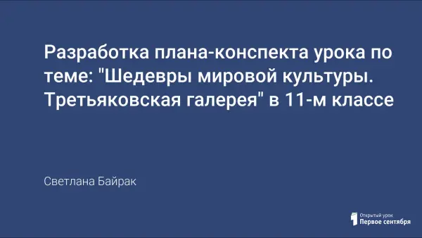 Данная разработка представляет план-конспект медиаурока по теме «Шедевры мирового искусства. Третьяковская галерея» в 11-м классе, предусматривающего знакомство учащихся с основными вехами истории Третьяковской галереи, представителями русской живописи и их шедеврами.