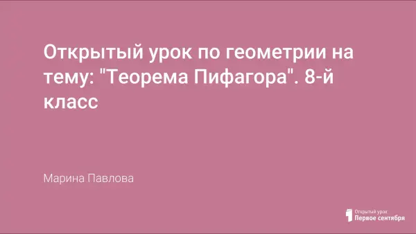 В данной работе представлен опыт проведения урока геометрии в 8-м классе по теме "Теорема Пифагора" с применением компьютерной презентации. Урок проводится по учебнику авторов Л.С. Атанасян и др. (п. 54).