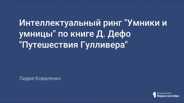 Мероприятие к уроку внеклассного чтения в 4-м классе проводится в форме интеллектуального ринга "Умники и умницы". Это дает возможность нацелить учащихся начальных классов на вдумчивое чтение литературных произведений, проявить себя среди одноклассников.