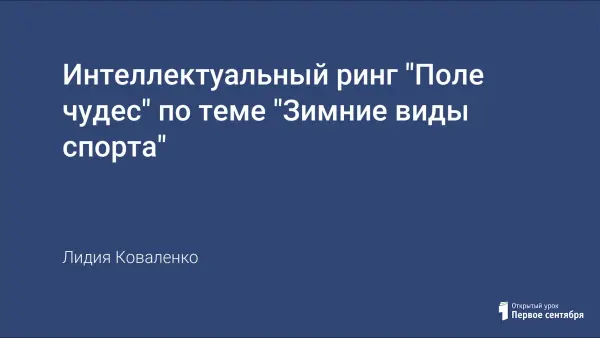 В интеллектуальном ринге по теме «Зимние виды спорта» старшие дошкольники соревнуются в знании спорта. Узнают интересные сведения из истории олимпийского движения. Поют песни, посвящённые олимпийским играм в Сочи на стихи автора этой разработки. Участвуют в конкурсах, показывают фокусы с олимпийским символом – пятью кольцами. Этому символу в 2013 году исполняется 100 лет!