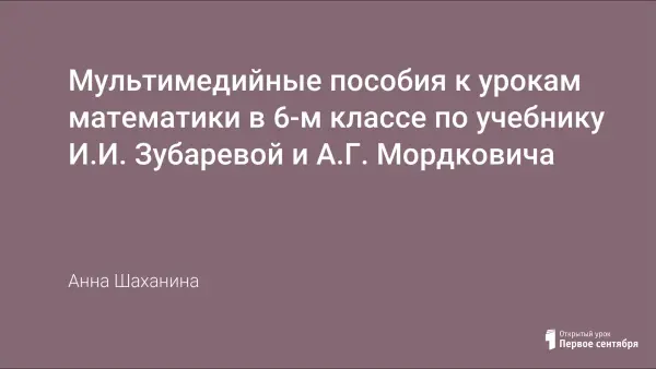 В статье предложены разработки фрагментов уроков математики в 6-м классе по учебнику И.И. Зубаревой и А.Г. Мордковича с применением презентаций, содержащих фотографии и анимацию. Их использование на разных этапах урока поможет создать игровую ситуацию и одновременно организовать самоконтроль учащихся. В работе представлены презентации к урокам по темам: "Поворот и центральная симметрия", "Числовые выражения, содержащие знаки +, -", "Алгебраическая сумма", "Расстояние между точками на координатной прямой", "Приведение дробей к наименьшему общему знаменателю", "Введение в вероятность".