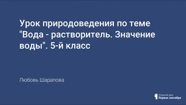 На уроке формируются у учащихся знания о важнейшем биологическом свойстве воды как растворителе. Проводится лабораторная работа «Определение растворимости веществ в воде». Продолжается знакомство с круговоротом воды в природе, раскрывается взаимосвязь оболочек Земли.
