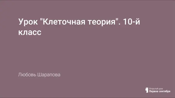 На уроке формируются знания об истории создания клеточной теории, ее положениях, методов изучения клетки и ее органоидов. Пробудить интерес у учащихся к истокам создания клеточной теории и русскими учеными. Сравнить положения клеточной теории 1839 года и современной. Использовать на уроке видеоматериал и приготовленные сообщения учащихся.