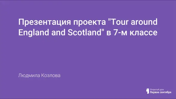 Проектная деятельность - это форма коллективной работы, в основе которой лежит личностно ориентированный подход к обучению. При подготовке творческих заданий дети обычно совершают большой рывок в изучении языка, поскольку дух соревнования, праздника, игры заставляет их наиболее активно и сознательно погружаться в языковую среду. В процессе работы над проектом "Путешествие по Англии и Шотландии" семиклассники получили большой объем информации культурно-исторического характера о стране изучаемого языка.