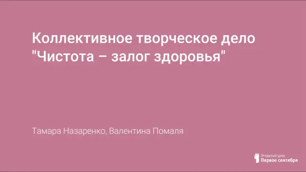 Здоровье человека - тема для разговора достаточно актуальная. Поэтому мы постарались, через игру, в занимательной форме создать условия для усвоения понятий "здоровый образ жизни", "охрана здоровья" и убедить ребят в необходимости соблюдения личной гигиены. Во время проведения КТД (с использованием мультимедиа) положительный эмоциональный настрой ребят помог им раскрыть свои творческие способности при выполнении различных заданий. Работая в группах разного возраста, ребята учились общаться друг с другом, помогать друг другу.
